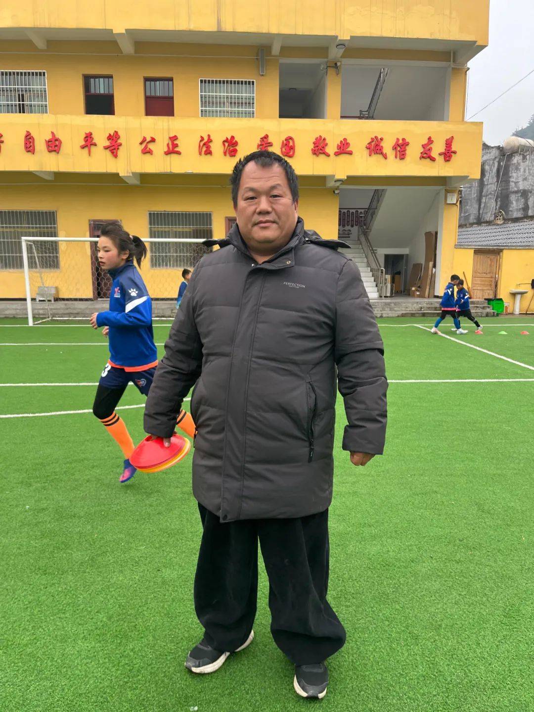 孩子们正在球场上教师。图片起首:受访者供图