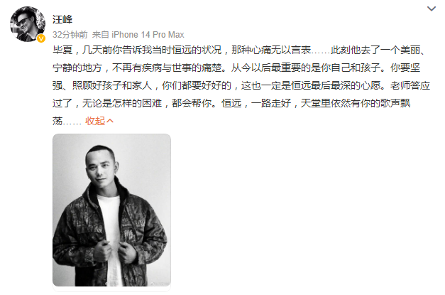 歌手张恒远死字的音讯实在太倏得。