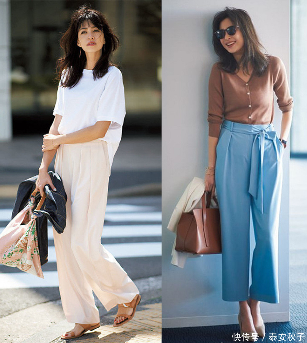 兼具实用感和前锋感的阔腿裤单品,与修身小衫的搭配组合,既显得身姿更利落、气场更高,又能彰显出更显然的干练风仪。